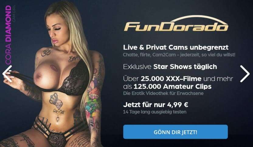 Mit diesem Fundorado Gutschein sicherst du dir als Neukunde einen günstigen Test-Zugang zu hunderten von Sex Cams, privaten Amateuren und Sexvideos. Um das erotische Angebot auf Fundorado.de in vollem Umfang zu nutzen brauchst du nichts weiter als dir einen Account zu erstellen und dir einen der 4 Tarife frei nach deinem Wunsch auszuwählen. Übrigens, je höher der Tarif, desto mehr kannst du sparen. In jeder Mitgliedschaft sind Live Cams bereits enthalten. Such dir ein Paket aus und ergattere dir am besten heute noch den Rabatt für den 14 tägigen Testzugang auf Fundorado. Hierfür einfach Aktion anklicken, bei der Anmeldung deine Daten eingeben und bestätigen. Los geht´s!